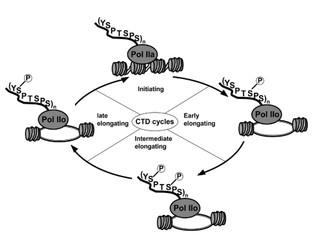 일반 전사인자가 순서에 따라 결합하는 것이 생체 밖(in vitro)의 전사 시스템에서 RNA 중합효소Ⅱ가 전사를 시작하기 위해 필요한 최소한의 조건이지만, 세포 내에서는 추가적인 전사인자가 필요합니다. 그러한 전사인자로는 20개 이상의 소단위체가 모여 이루어진 매개체(mediator)라고 하는 것이 있는데 이 매개체는 RNA 중합효소와 일반 전사인자와 상호작용합니다. 매개체는 기본적인 전사를 촉진하기도 하지만 유전자 특이적인 전사인자의 결합에도 핵심적인 역할을 합니다. 중합효소가 개시 전 복합체를 형성하고 중합효소의 CTD의 인산화가 이루어지면 매개체는 그로부터 떨어져 나옵니다. 그리고 나면 인산화된 CTD는 RNA의 합성과 전사 후 정리 과정에 필요한 단백질들과 결합하게 됩니다.